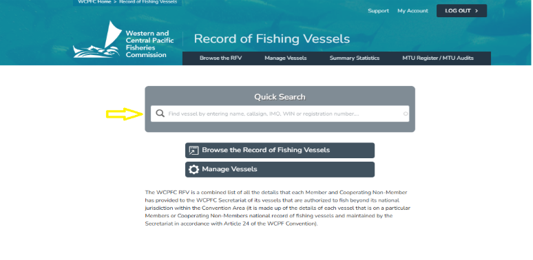 Step 1: When a CCM needs to deactivate a MTU they first browse for the vessel on the Record of Fishing Vessels: