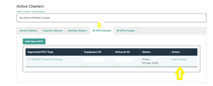 Step 2: Open the vessel record and scroll down to the MTU Details Tab and click on