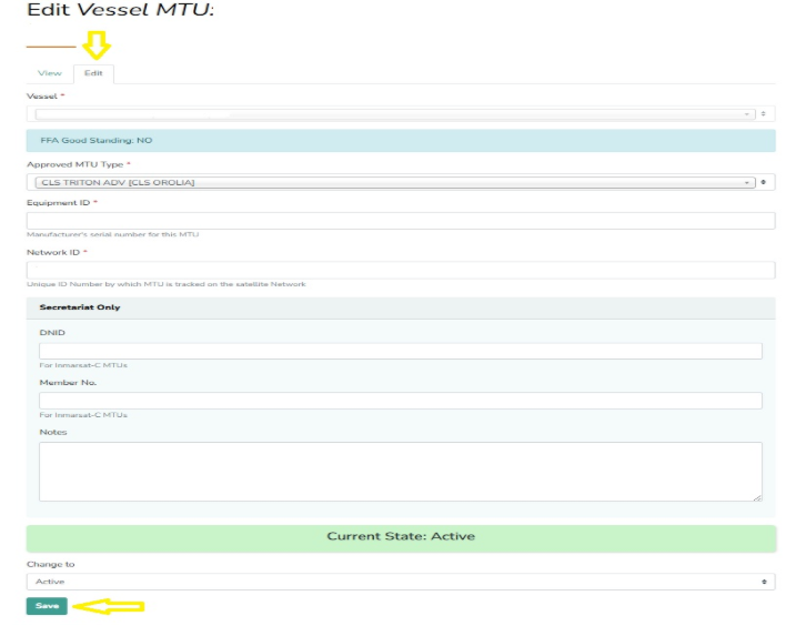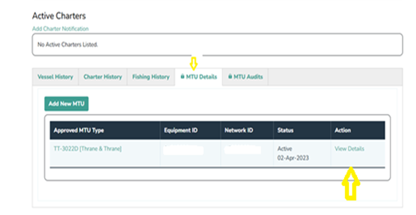 Step 2. Open the vessel record and scroll down to the MTU Details Tab and click on it. Next, under Action click on View Detail of the active MTU as shown below: